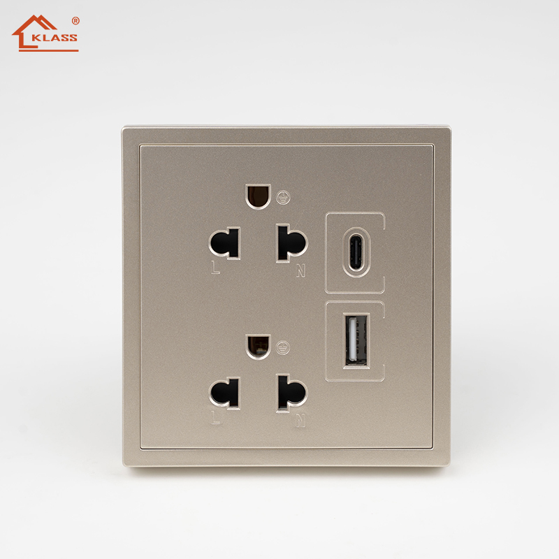 Manufacturers 86 Double Thailand Socket 13A 250V Switches and Sockets CE/CB/UKCA Plastic Frame USB Type C Port Wall Light Switch