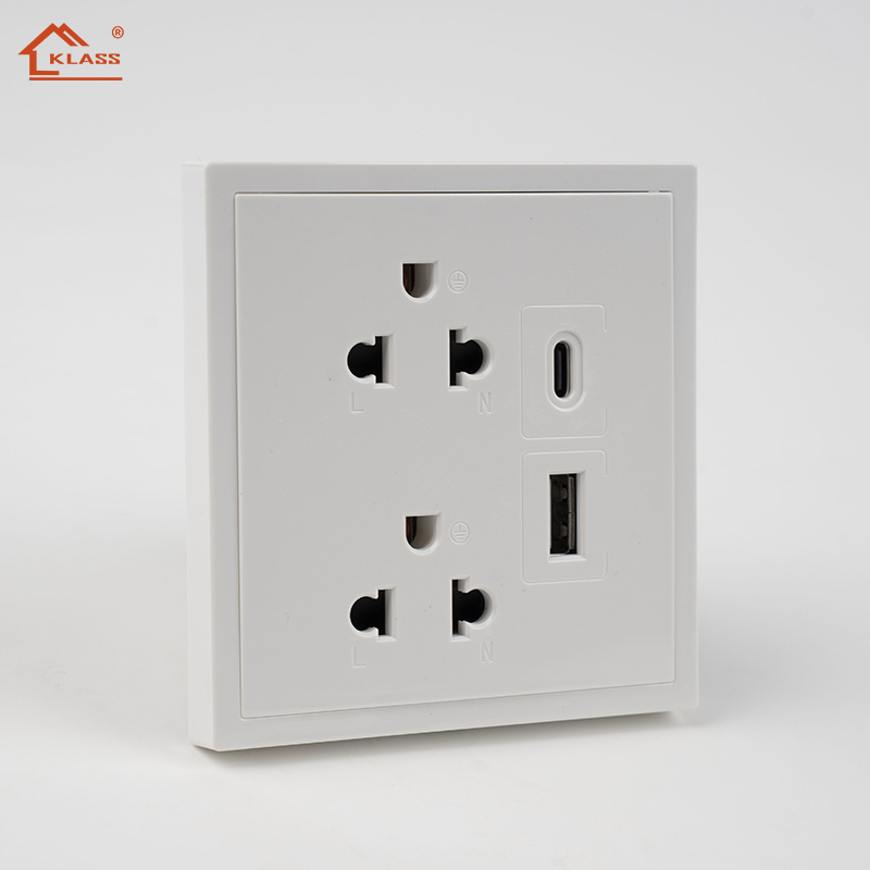 Manufacturers 86 Double Thailand Socket 13A 250V Switches and Sockets CE/CB/UKCA Plastic Frame USB Type C Port Wall Light Switch