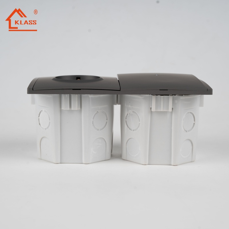 Trendy Gray European-style Electrical Wall Switch and Socket European Standard 2-gang with Light for Home Decoration