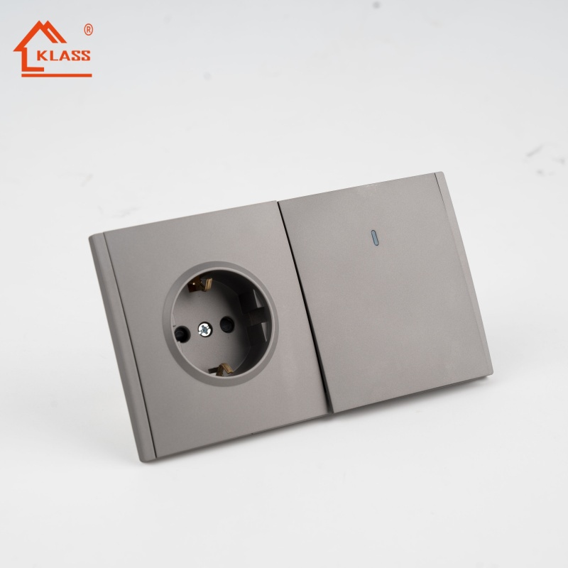 Trendy Gray European-style Electrical Wall Switch and Socket European Standard 2-gang with Light for Home Decoration